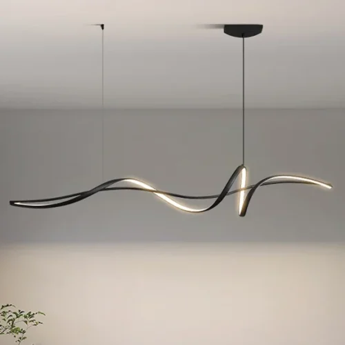 Lustre Preto Linear Alumínio Em Curva e Luz de LED