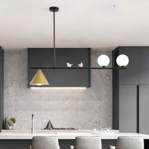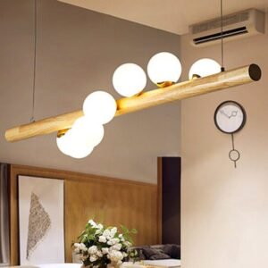 Lustre retangular longo bolas vidro