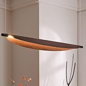 Lustre retangular folha Acabamento Madeira
