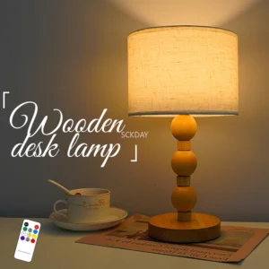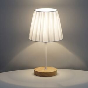 Abajur Madeira Natural Cúpula Branca