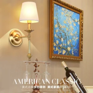 Arandela Dourada Clássica Cúpula Tecido