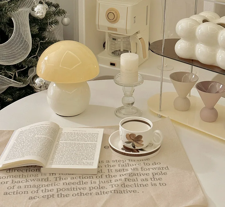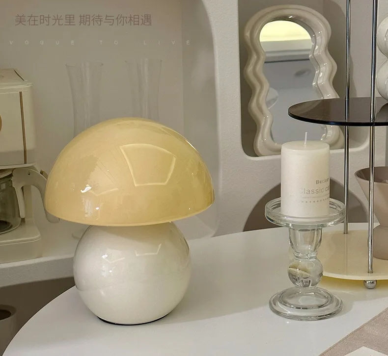 Abajur Cerâmico Cogumelo e Vidro Medieval