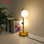 Abajur Moderno Com 2 Bolas Vidro Branco Leitoso