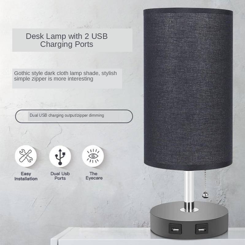 Abajur moderno pequeno simples com cúpula cônica preta e duas entrada USB