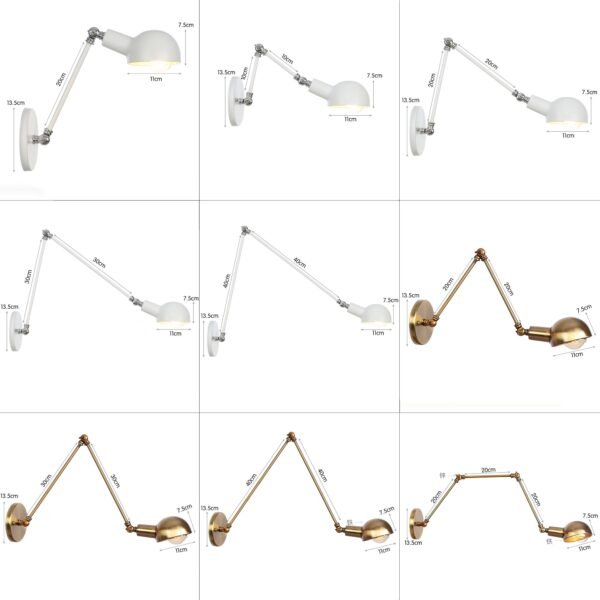 Luminária de parede arandela industrial/retro com hastes/braços articulados/ajustável