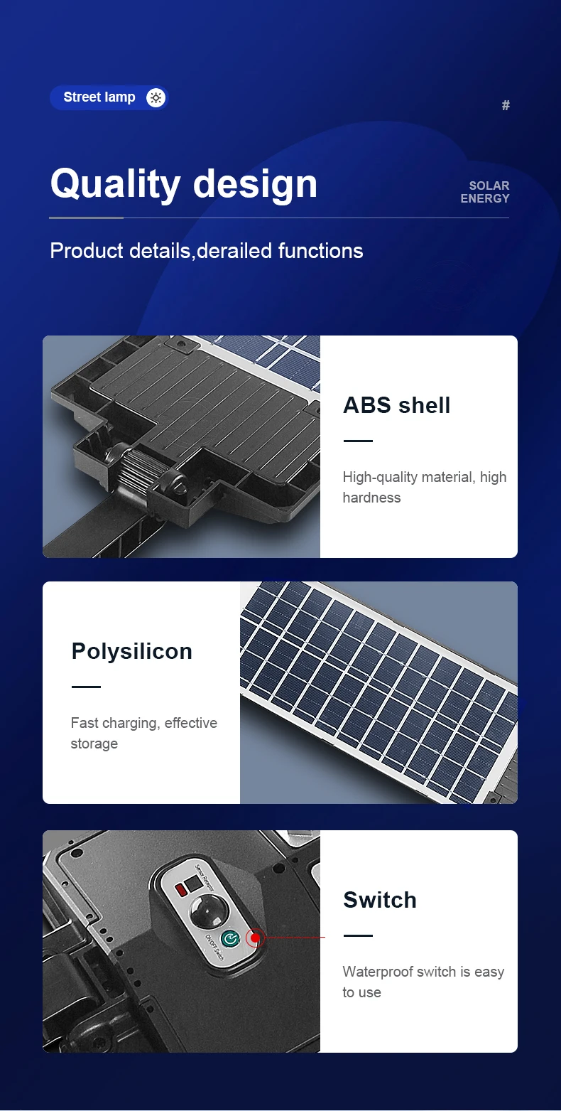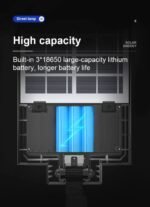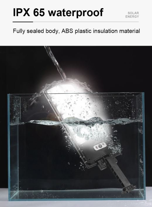 5 – Projetada com classificação à prova d’água IP65, esta luz solar resiste à chuva e à neve, garantindo desempenho confiável em diversas condições climáticas, enquanto alimentada por baterias 18650 de alta capacidade para uso duradouro.