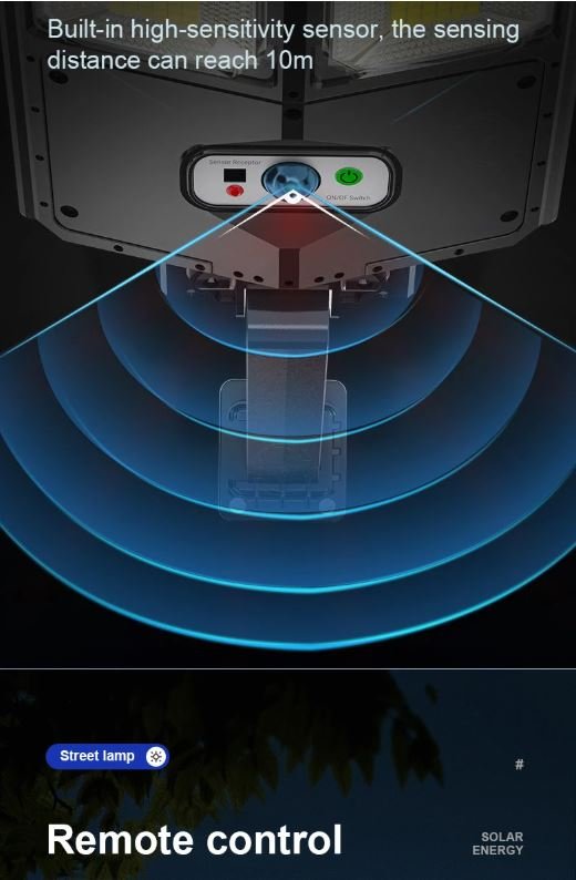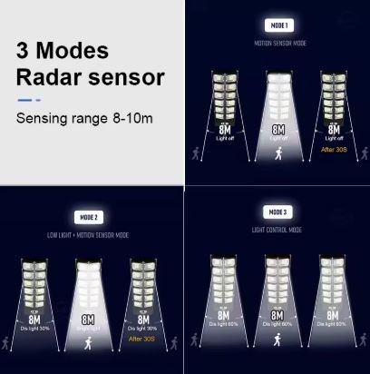 3 – Apresentando um 320° capacidade de iluminação de ampla gama, esta luz solar detecta efetivamente o movimento dentro de 8 a 10m, iluminando automaticamente o ambiente para maior segurança.