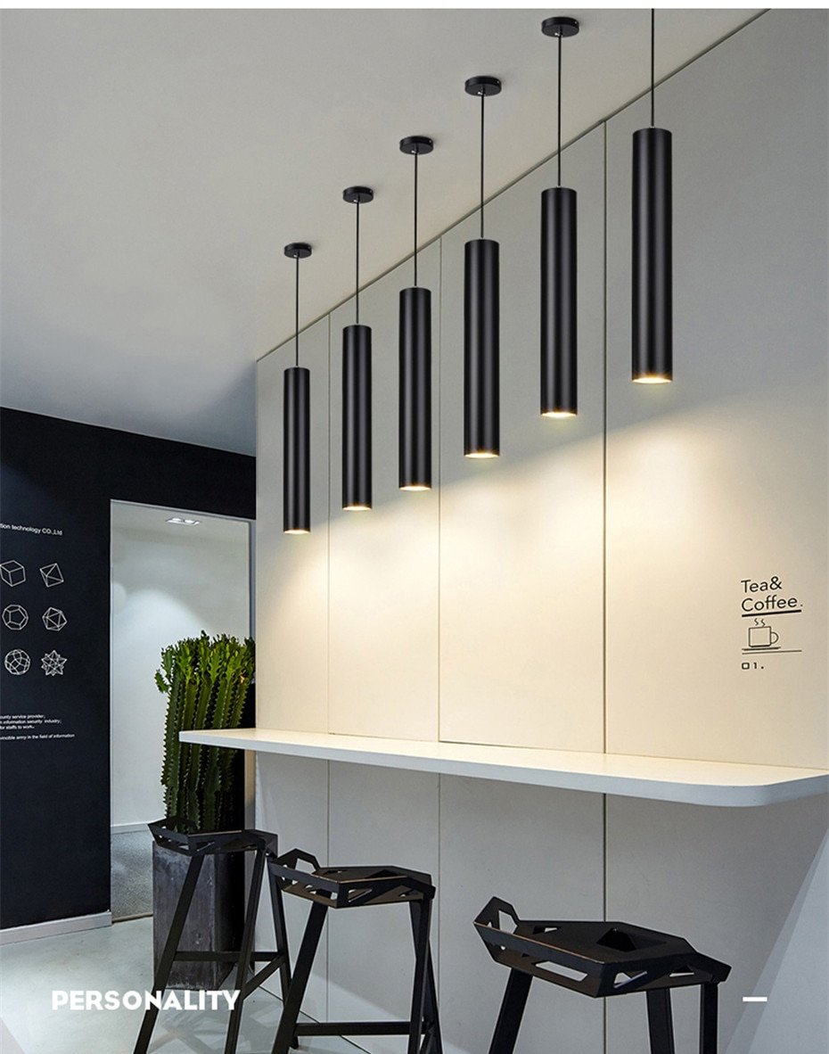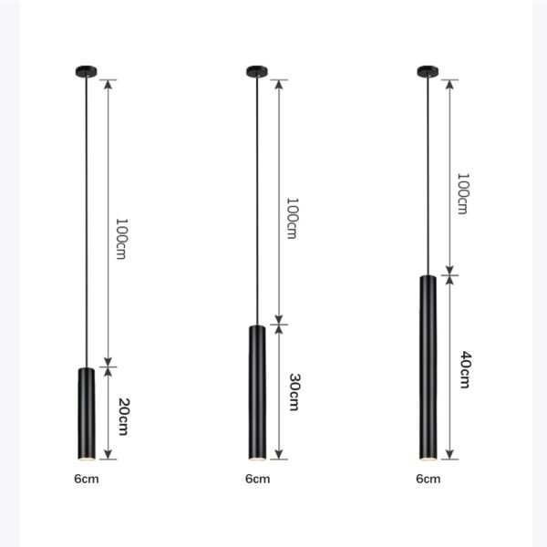 Pendente tubo cilíndrico de alumínio e luz de led