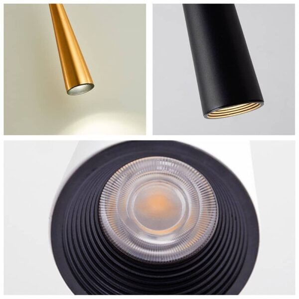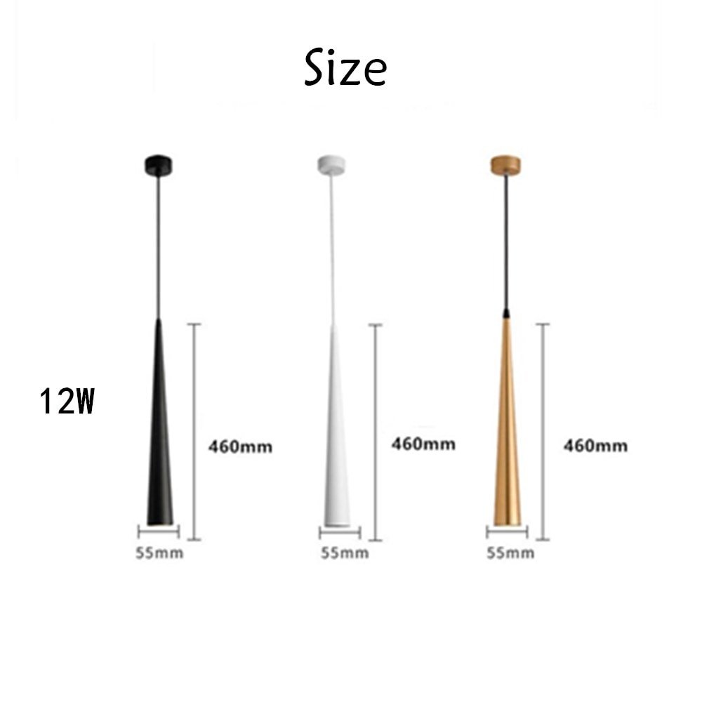 Pendente cone tubo longo de alumínio e luz de led