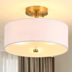 Luminária Teto Sobrepor Redondo Tecido Branco ou Cinza