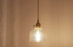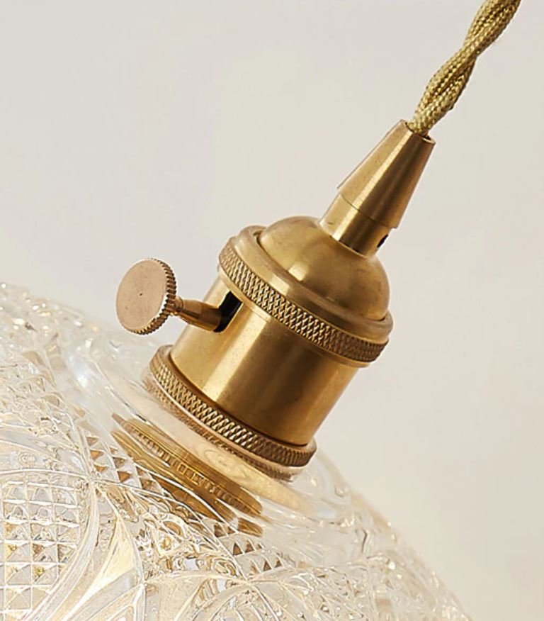 Luminária de teto pendente simples moderno, pequeno, com cúpula de vidro e botão de liga/desliga na própria luminária