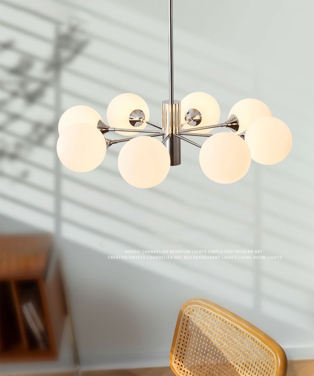Lustre moderno esfera vidro branco leitosa